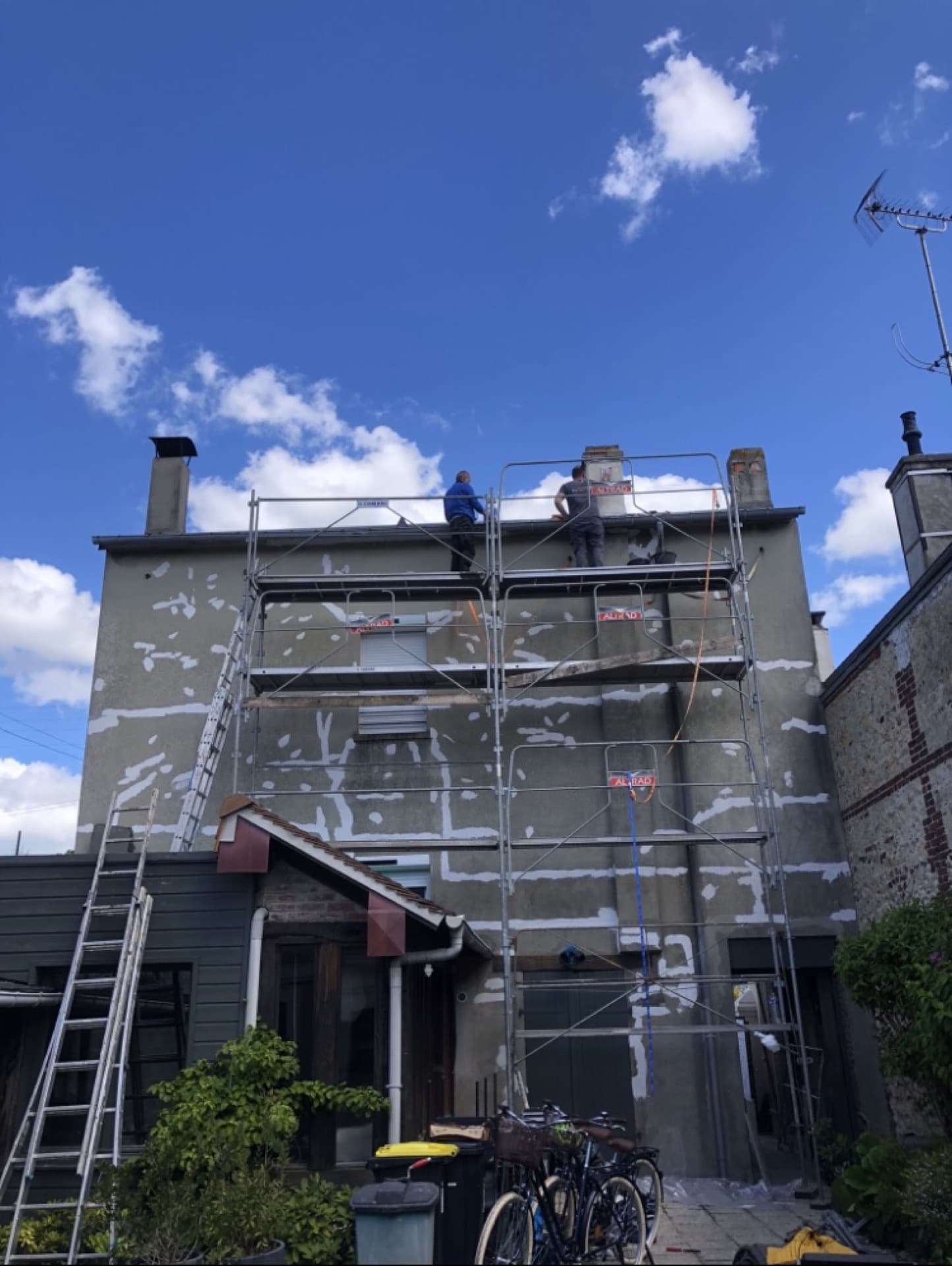 Remplacement des gouttières et remise en état de la façade.